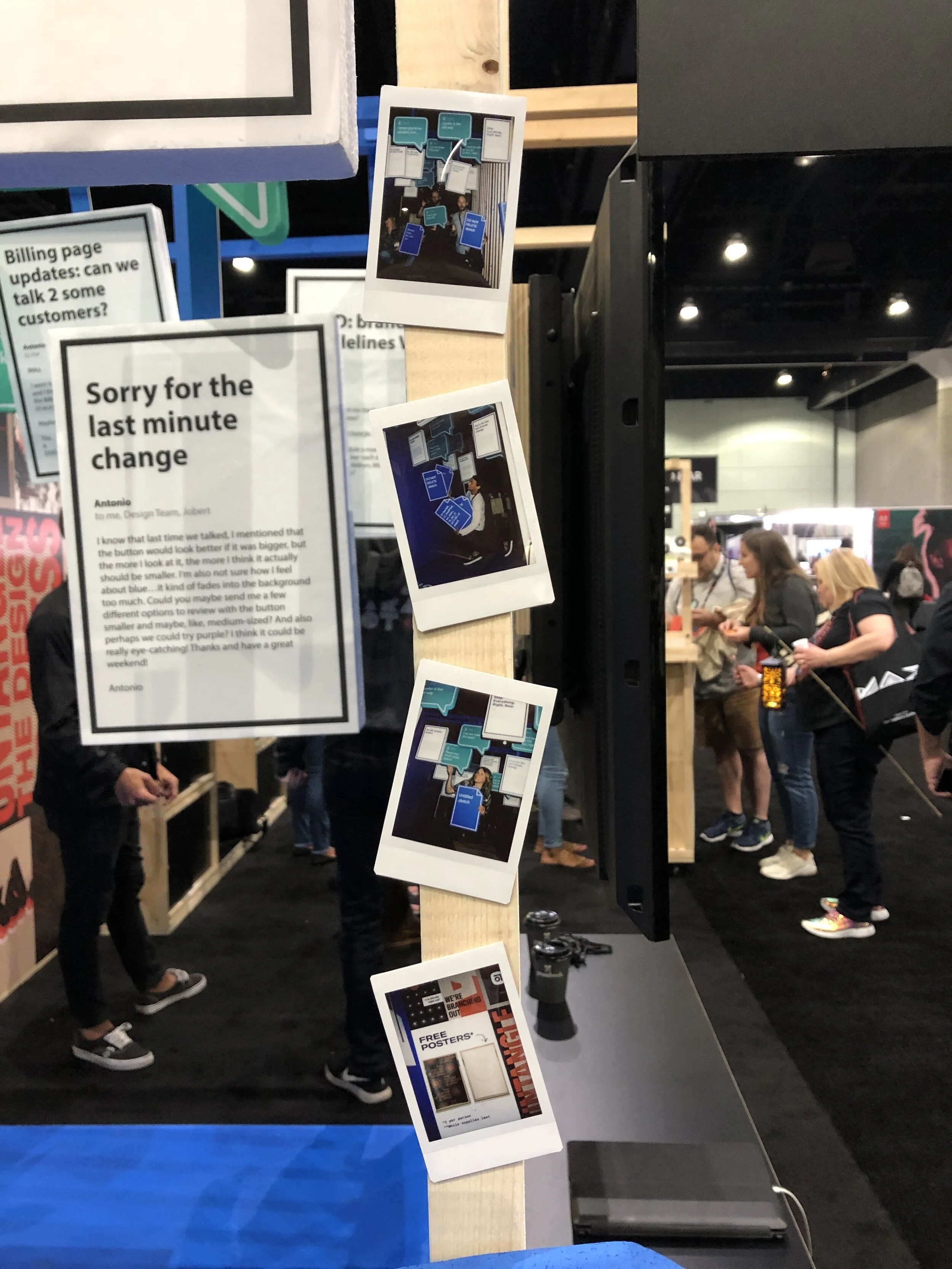 On the media wall outside the booth, attendees could sit down and watch some of our brand characters go through everyday designer experiences in a similar setting to the “feedback tunnel.” We placed additional advertisements around downtown LA to remind Adobe Max attendees about their booth experience.